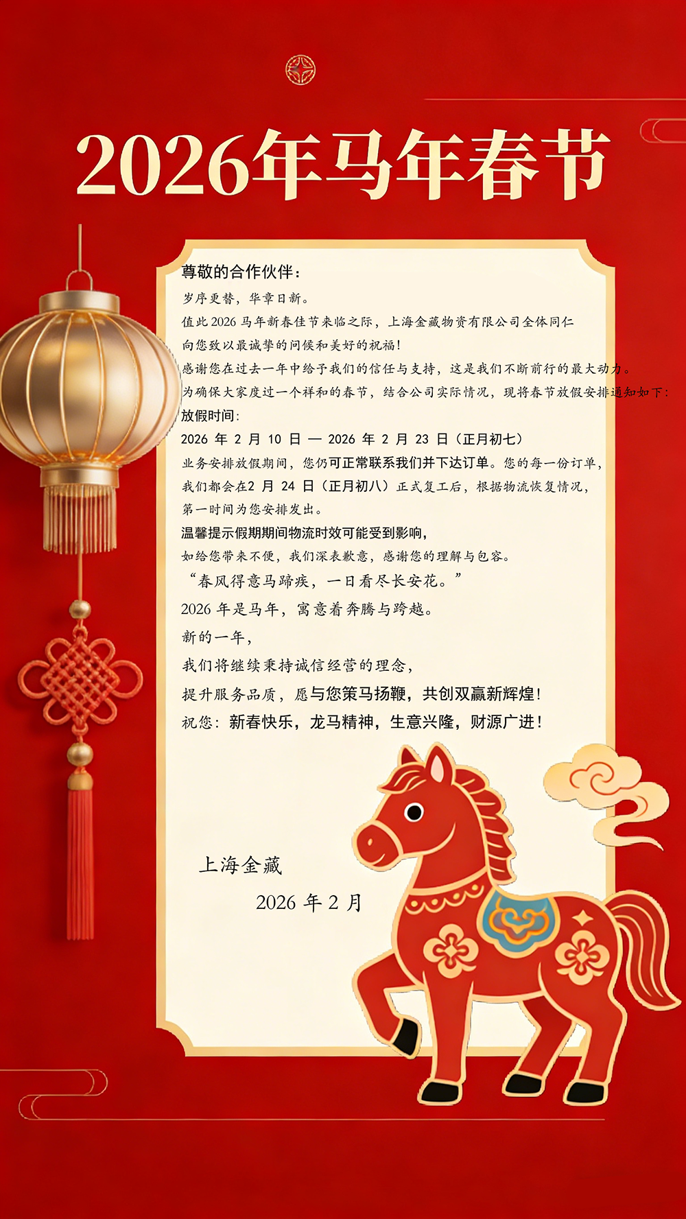 2026丙午年春节放假通知